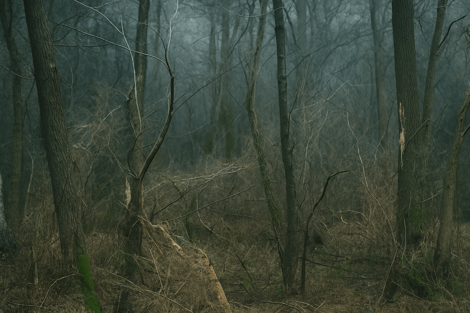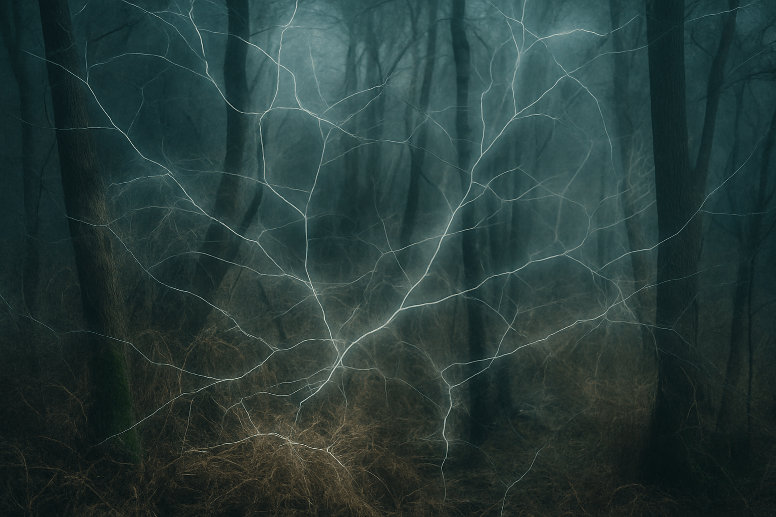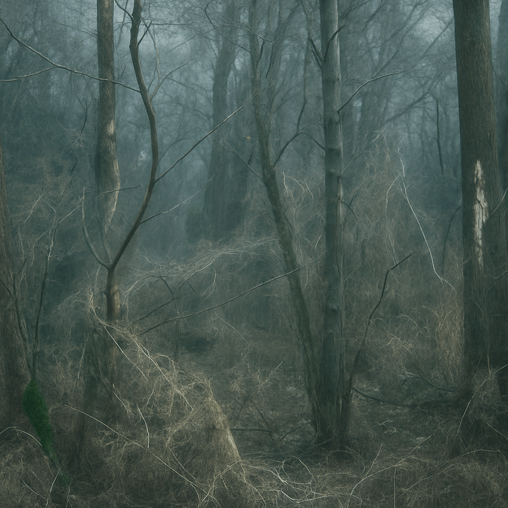 In mehreren ersten Bearbeitungen wurde versucht, dem Wald durch digitale Netzstrukturen eine neue Form zu geben. Doch die Ergebnisse blieben hinter der Intention zurück. Zu starr, zu technisch, zu kontrolliert. Die Linien wirkten aufgesetzt, die Atmosphäre erstickt. Was fehlte, war die Bewegung – jenes innere Vibrieren, das ein Bild lebendig macht.
